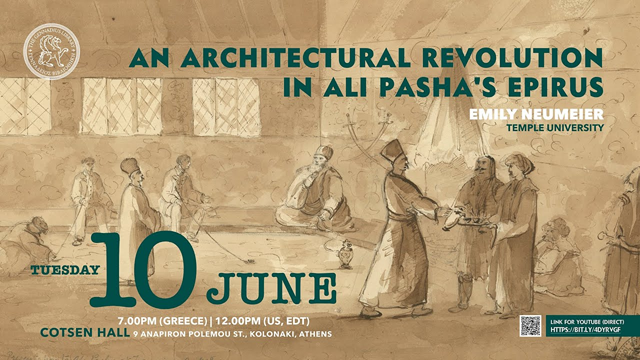 Λίγα λόγια για τη διάλεξη Σε αυτή την ομιλία θα εμβαθύνουμε στην ιστορία της οθωμανικής αρχιτεκτονικής στο άκρο της Αυτοκρατορίας, μέσω των παραγγελιών του Αλή Πασά της Ηπείρου. Την παραμονή της Ελληνικής Επανάστασης, ο ανερχόμενος αυτός κυβερνήτης ανέλαβε τη διακυβέρνηση μιας εκτενούς περιοχής που περιλάμβανε αυτό που σήμερα αποτελεί μεγάλο μέρος της βόρειας Ελλάδας και της νότιας Αλβανίας. Ο Αλή Πασάς άλλαξε ριζικά αυτή την περιοχή με την επαναστατική του προσέγγιση στην αρχιτεκτονική, η οποία από τη μια λειτουργούσε εντός της Οθωμανικής Αυτοκρατορίας αλλά συνάμα ανταγωνιζόταν και προκαλούσε την άρχουσα τάξη. Αυτό είναι ιδιαίτερα εμφανές στις επιγραφές που κοσμούν κτίρια και μνημεία. Μέχρι τον δέκατο ένατο αιώνα υπήρχαν αυστηρά πρότυπα για το περιεχόμενο και τη μορφή δημόσιων κειμένων στην Οθωμανική Αυτοκρατορία, και ο Αλή Πασάς αμφισβήτησε αυτούς τους κανόνες σε κάθε ευκαιρία. Η παρουσίαση αυτή θα εξετάσει πώς ο Αλή Πασάς παρήγγειλε πολλές επιγραφές σε ελληνικό στίχο, -μια μορφή που παραπέμπει σε τοπικά λαϊκά τραγούδι-, και οι οποίες τονίζουν τις τοπικές ρίζες του και τη νομιμότητα της εξουσίας του. Αυτά τα κείμενα αποτελούν σημαντική υλική μαρτυρία για τις προσπάθειες του να εγγράψει το προσωπικό του είδος πολιτικής στο τοπίο της Ηπείρου. Η ομιλία θα γίνει στα αγγλικά. Λίγα λόγια για την ομιλήτρια Η Emily Neumeier είναι Επίκουρη Καθηγήτρια Ιστορίας της Τέχνης στο Πανεπιστήμιο Temple της Φιλαδέλφεια, με ειδίκευση στην τέχνη και την αρχιτεκτονική της ανατολικής Μεσογείου κατά την οθωμανική περίοδο. Έχει γράψει το βιβλίο Architectural Revolution on the Ottoman Frontier: Greece and Albania in the Age of Ali Pasha [Αρχιτεκτονική Επανάσταση στα Οθωμανικά Σύνορα: Ελλάδα και Αλβανία στην Εποχή του Αλή Πασά] (Penn State Press, 2025) και είναι συν-επιμελήτρια του τόμου Hagia Sophia in the Long Nineteenth Century [Η Αγία Σοφία στον μακρύ Δέκατο Ένατο Αιώνα] (Edinburgh University Press, 2024). Για την έρευνά της σε αρχεία και το πεδίο έχει χρηματοδοτηθεί από το National Endowment for the Humanities, το Getty Research Institute, το American Council of Learned Societies, το American Research Institute στην Τουρκία και το Πρόγραμμα Fulbright. Πριν το Πανεπιστήμιο Temple, ήταν συνεργάτης στην ερευνητική ομάδα του Max Planck “Objects in the Contact Zone: The Cross-Cultural Lives of Things” στο Ινστιτούτο Ιστορίας της Τέχνης στη Φλωρεντία.