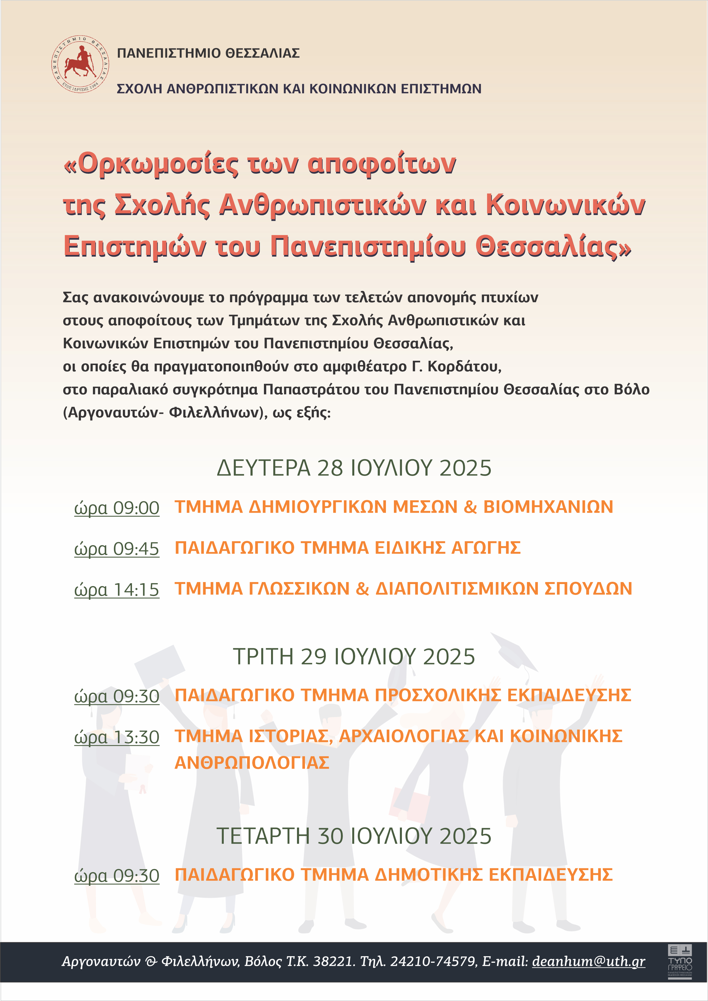 | 09:00 - 16:00 | Ορκωμοσίες ΣΑΚΕ Ιουλίου 2025 - Ημέρα 1η |